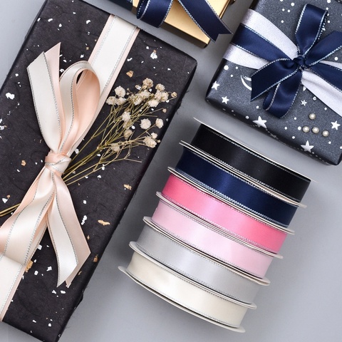 Yama Factory wholessales Stock in poliestere Double Face Fashion Gift nastro di raso 16mm di larghezza con bordo argento