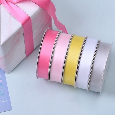 Yama Factory wholessales prezzo Stock Fashion nastron bordo oro metallizzato nastro di raso per confezione regalo
